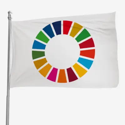 Produkt: Flag med tryk til udendørs brug. Størrelse: 200 x 275 cm.